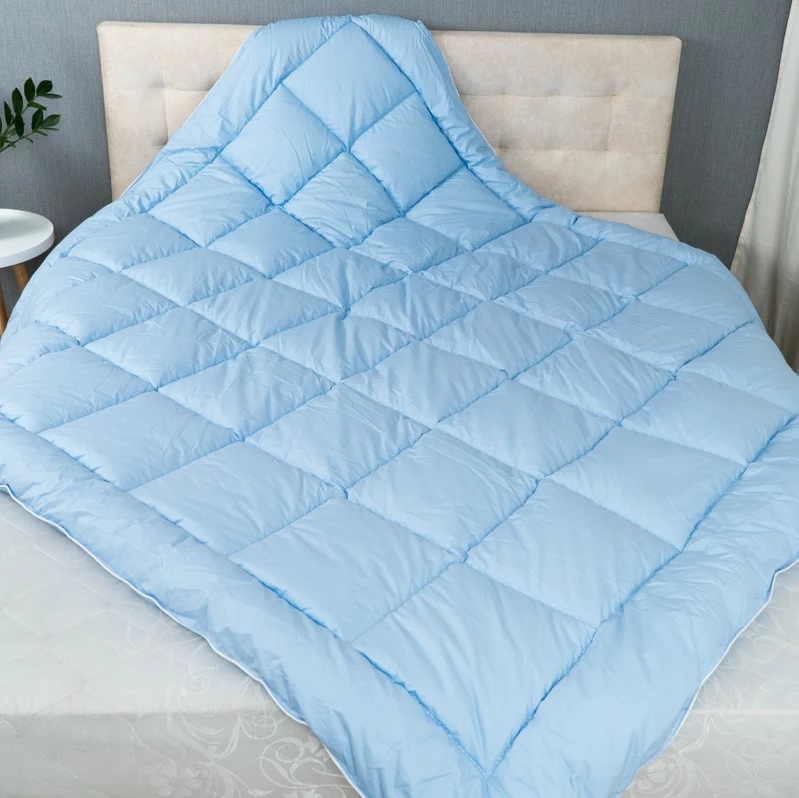 Ковдра з цього замінника натурального пуху легка та м'яка чудовою терморегуляцією.