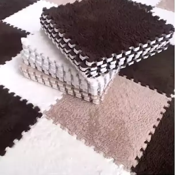 Плюшевый пол-пазл — это модульные напольные плитки из EVA-пены с мягким текстильным покрытием. Каждый элемент (30 x 30 см) оснащен замковыми соединениями, что позволяет легко складывать их в большой коврик любой формы. Плюшевая поверхность делает коврик комфортным, теплым и мягким для пола. Идеально подходит для детских комнат, игровых зон, мест отдыха, теплых и мягких ковриков на пол.