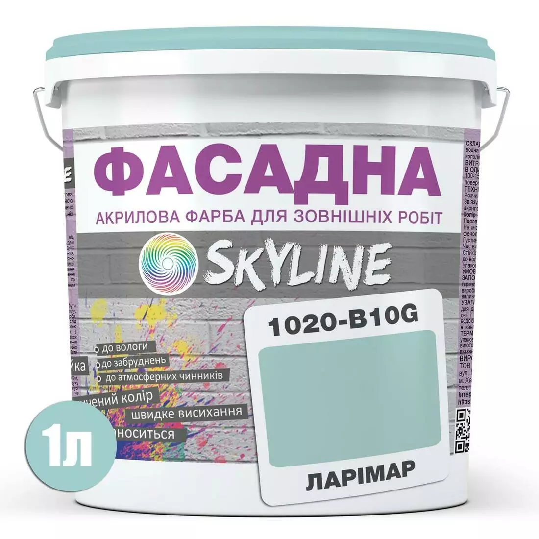 Краска Акрил-латексная Фасадная Skyline 1020-B10G Ларимар 1л