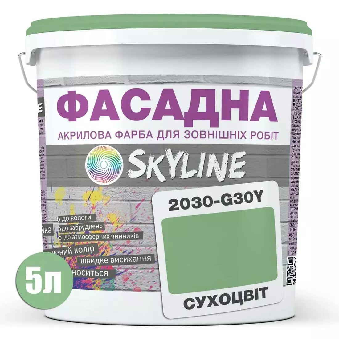 Краска Акрил-латексная Фасадная Skyline 2030-G30Y Сухоцвет 5л