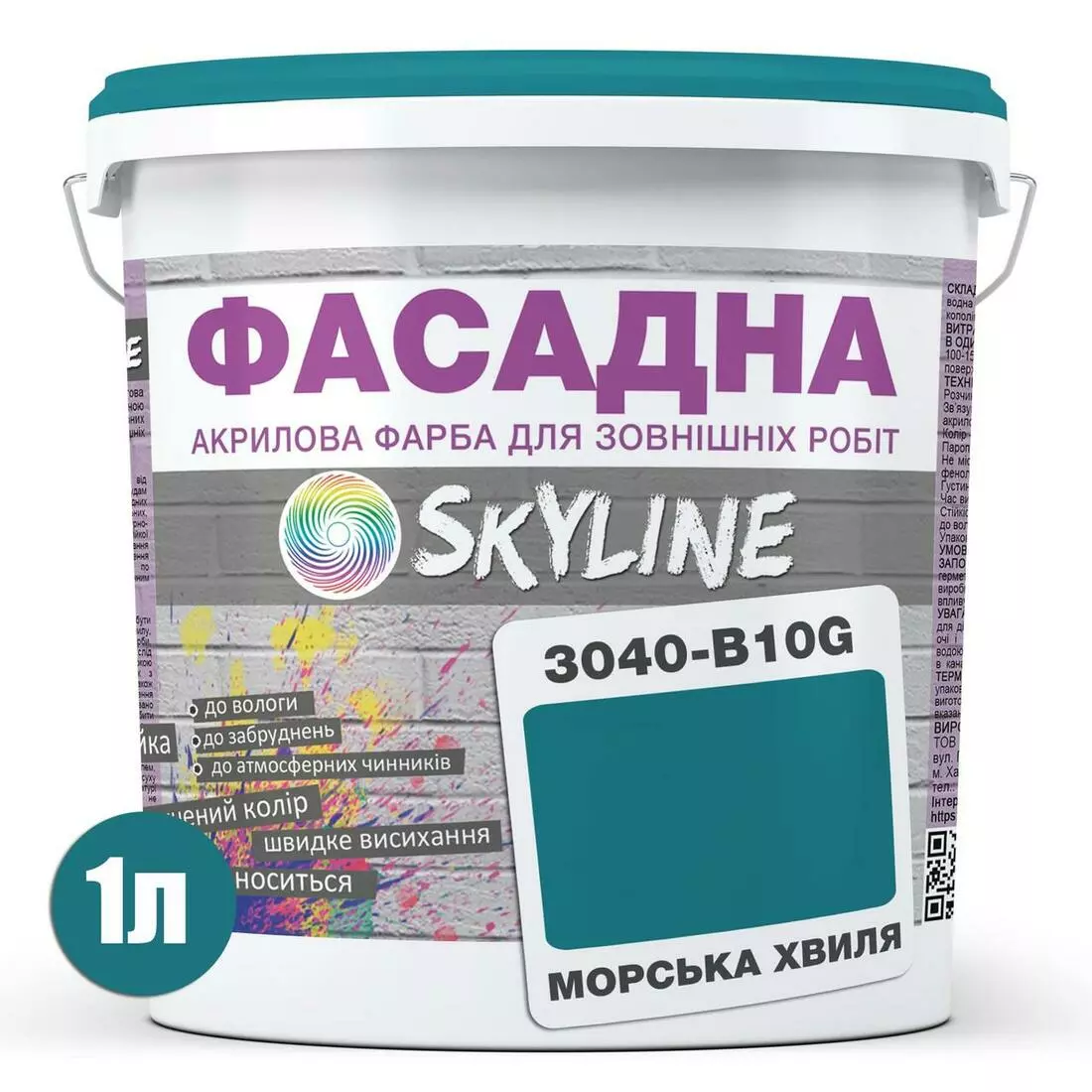 Краска Акрил-латексная Фасадная Skyline 3040-B10G Морская волна 1л