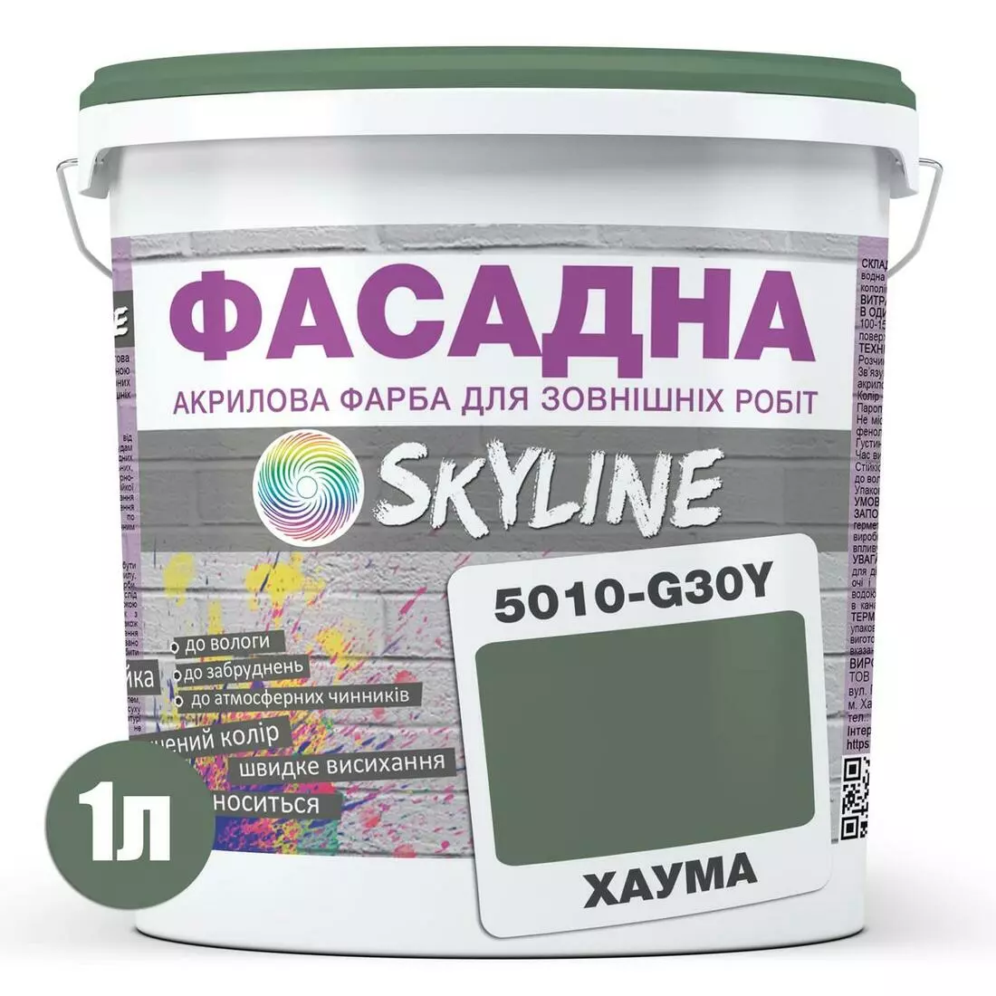 Краска Акрил-латексная Фасадная Skyline 5010-G30Y Хаума 1л