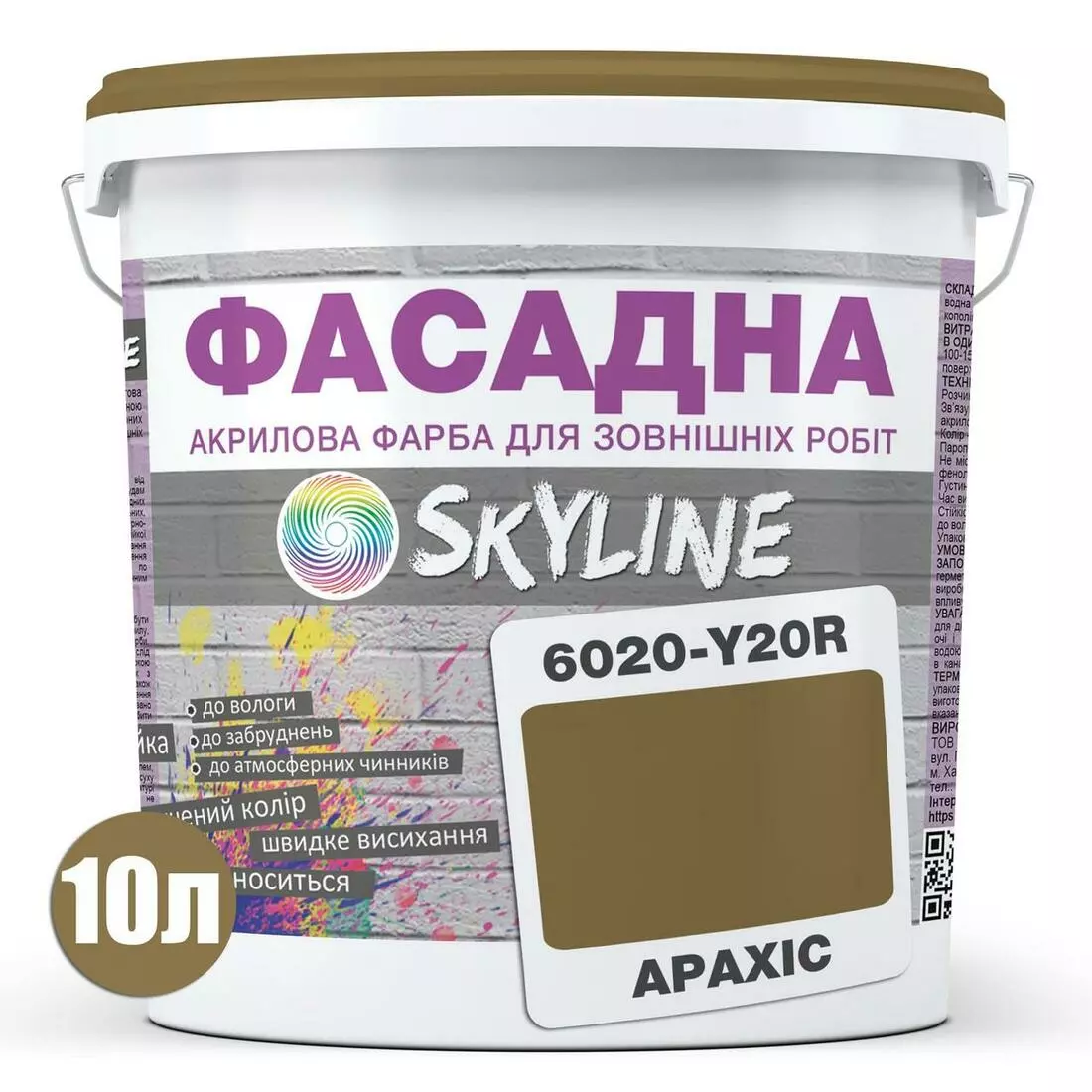 Краска Акрил-латексная Фасадная Skyline 6020-Y20R (C) Арахис 10л