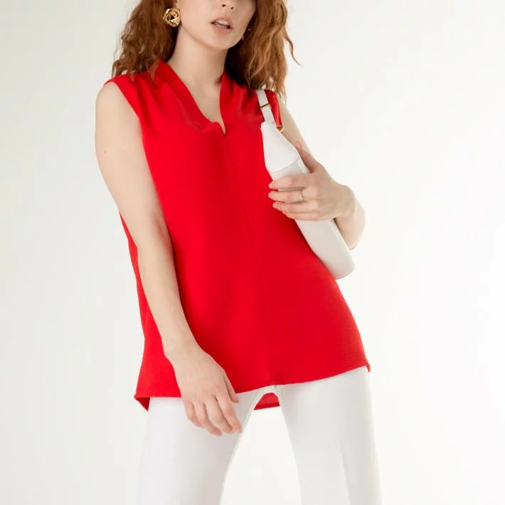 Базова блузка, з дизайнерською стійкою по горловині. Тканина