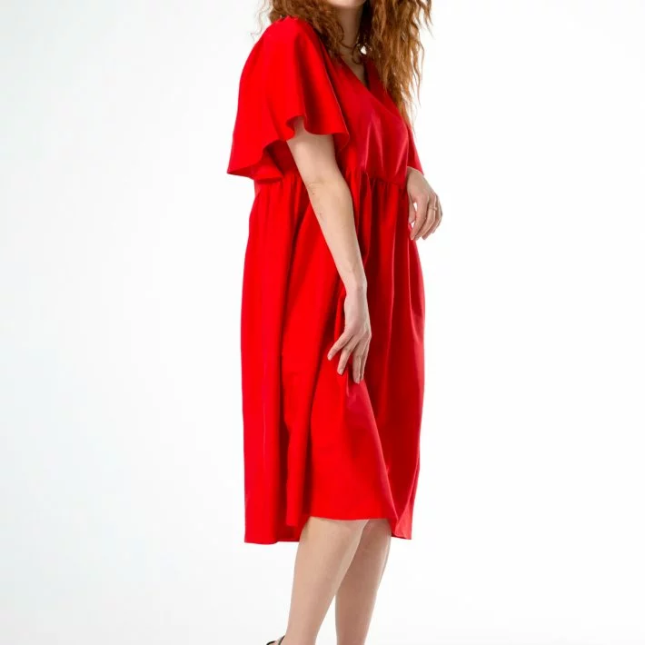 Яскрава сукня із збіркою на завищеній лінії талії і