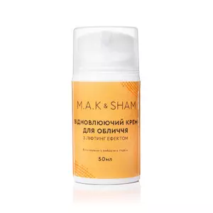 Крем для відновлення обличчя з ліфтинг ефектом від MAKSHAM - 100% натуральний продукт. Не містить барвників, спиртів, синтетичних компонентів. У складі присутні виключно натуральні інгредієнти. Регулярне використання крему для відновлення обличчя з ліфтинг ефектом зміцнює контур та овал обличчя, розгладжує зморшки та робить глибокі менш помітними.
