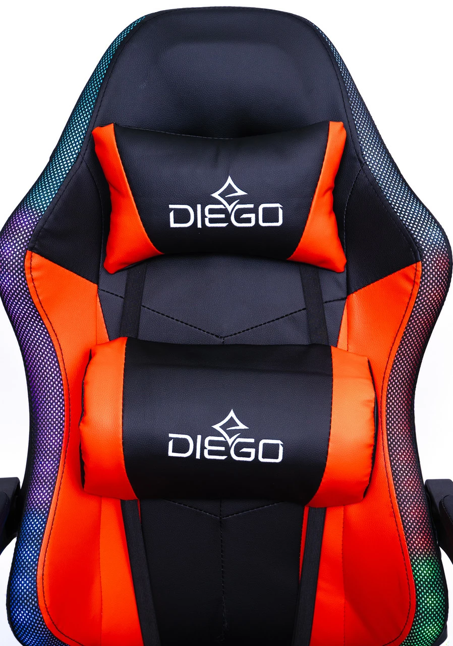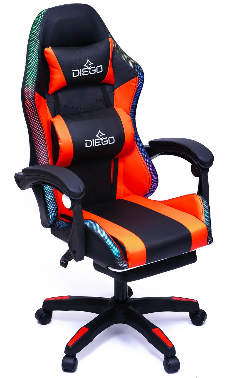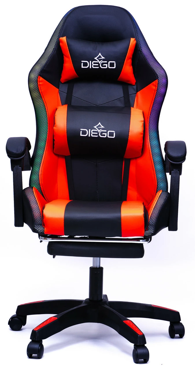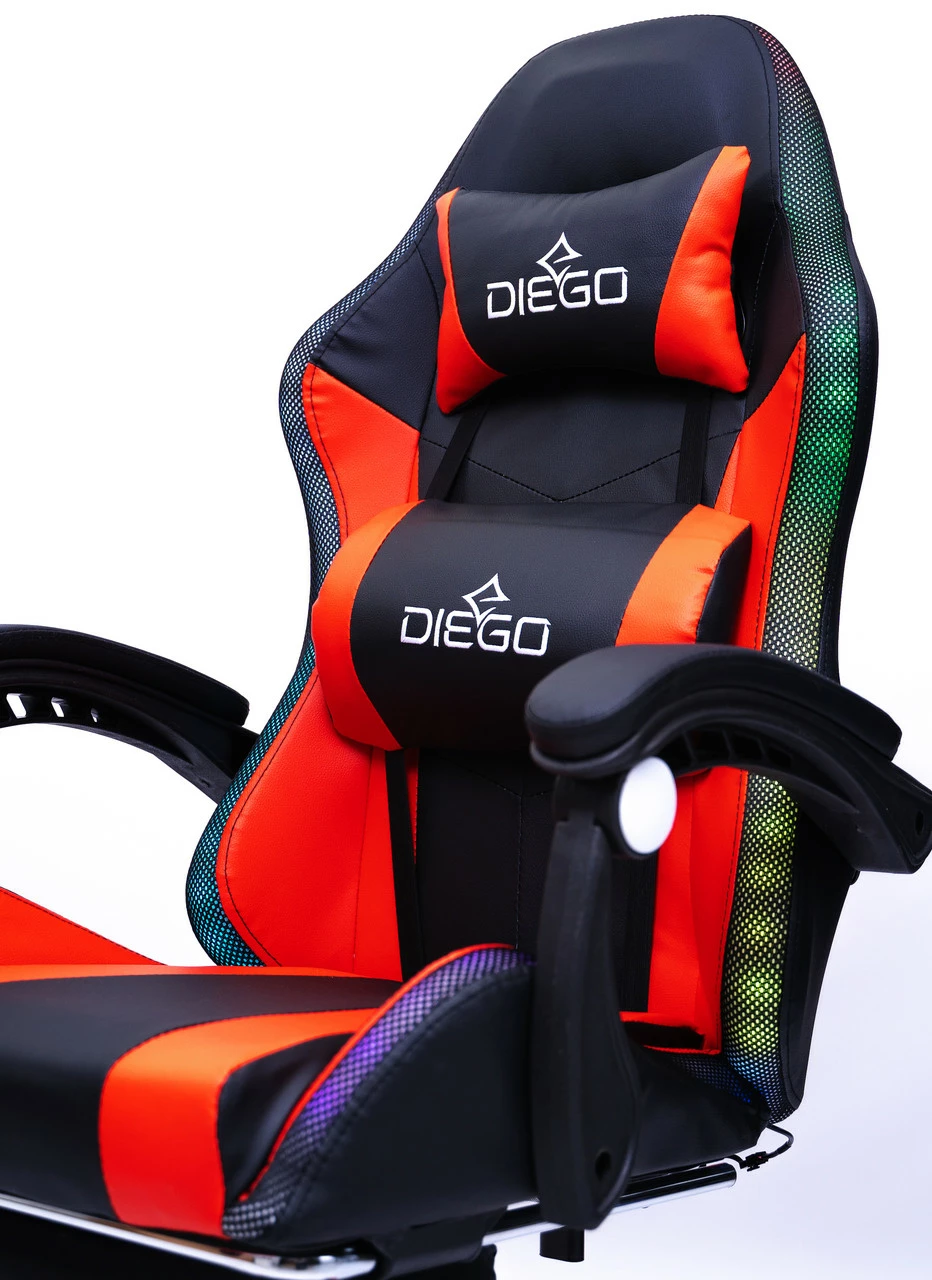 Кресло геймерское DIEGO с подставкою для ног и подсветкою черно-красное