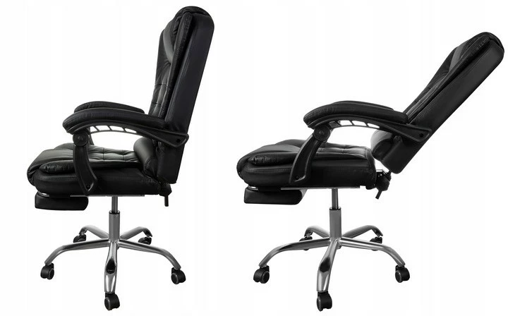 ЧЕРНЫЙ ПОВОРОТНЫЙ СТУЛ С ВЫДВИЖНОЙ ПОДСТАВКОЙ ДЛЯ НОГ, ФУНКЦИЕЙ ЛЕЖАНИЯ И КАЧАНИЯ