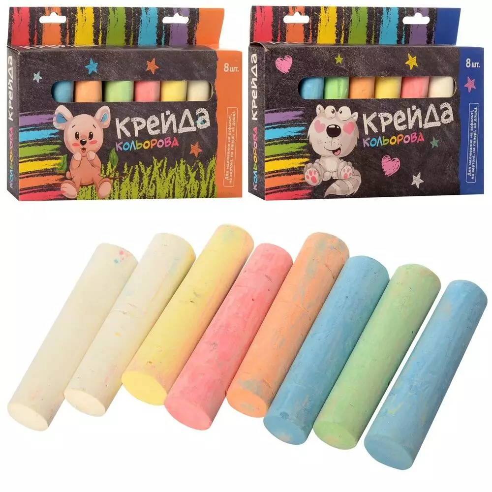 Крейда MK 0215 8 шт., велика, кольорова (8 кольорів), 2 види, кор., 19,5-13,5-2,5 см.