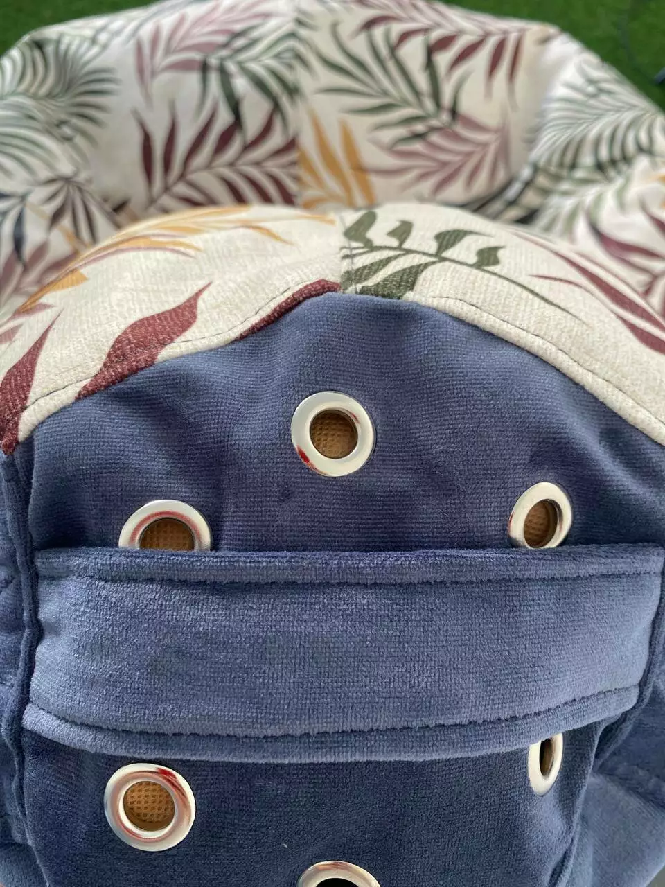 Пуф має ручку для зручного переносу та обов’язково люверси (отвори