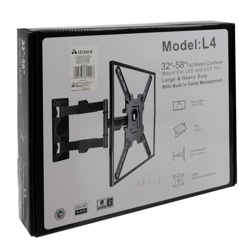 Тримач підходить для більшості моніторів (LED, LCD, Plasma, монітор ПК) розміром 32-58 і максимальною вагою 27 кг. Правильно змонтований, він добре тримається на стіні і телевізорі, що є гарантією безпеки та використання на довгі роки.