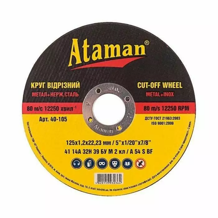 Круг відрізний ATAMAN застосовується на ручних УШМ у різанні