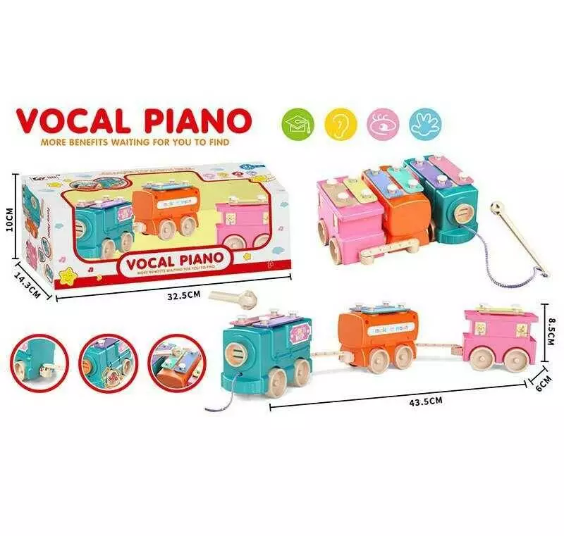 Каталка HX 985 (48) “Паровоз”, ксилофон, 43,5х6х8,5 см, 6 нот, молоточок, в коробці