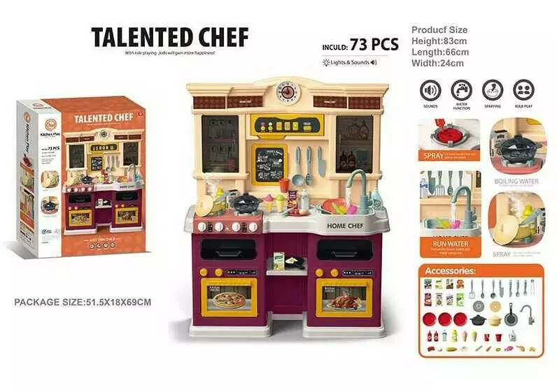 Кухня 922-135 (4) висота 83 см, 85 елементів, 2 режими витяжки, мелодії, світло, звук, парогенератор, помпова подача води, посуд, продукти, в коробці