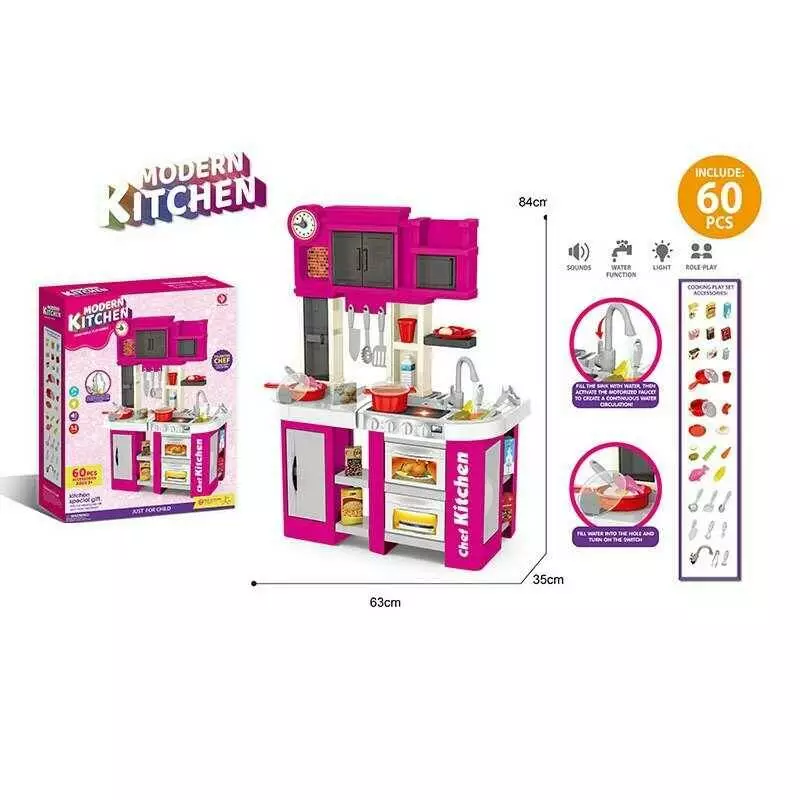 Home > Catalog > Toys > Toy furniture, household appliances > Кухня 922-167 (6) висота 84 см, 60 елементів, підсвічування, звук приготування, автоматична подача води, полички, посуд, продукти, прибори, в коробці wholesale