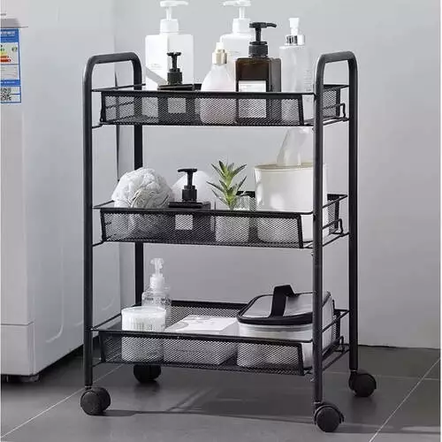 Кухонний стелаж з трьома полицями Ruhhy 24749 на колесах чорний