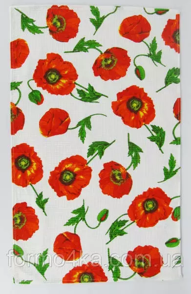Кухонное вафельное полотенце "Маки" 55х35см