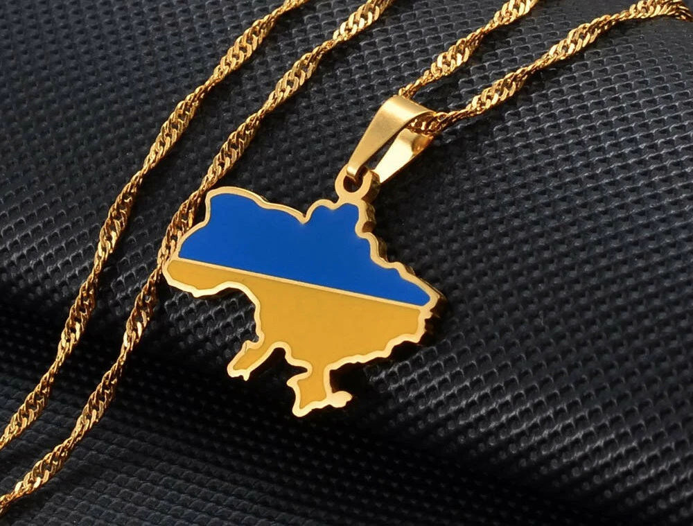 Home > Catalog > Jewelry & Ornaments > Pendants > Кулон Карта України RESTEQ золотого кольору 60 см. Підвіска у формі карти України. Кулон прапор України wholesale