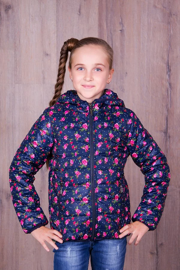 Демисезонная подростковая ветровка для девочек,тёмно-синяя в
