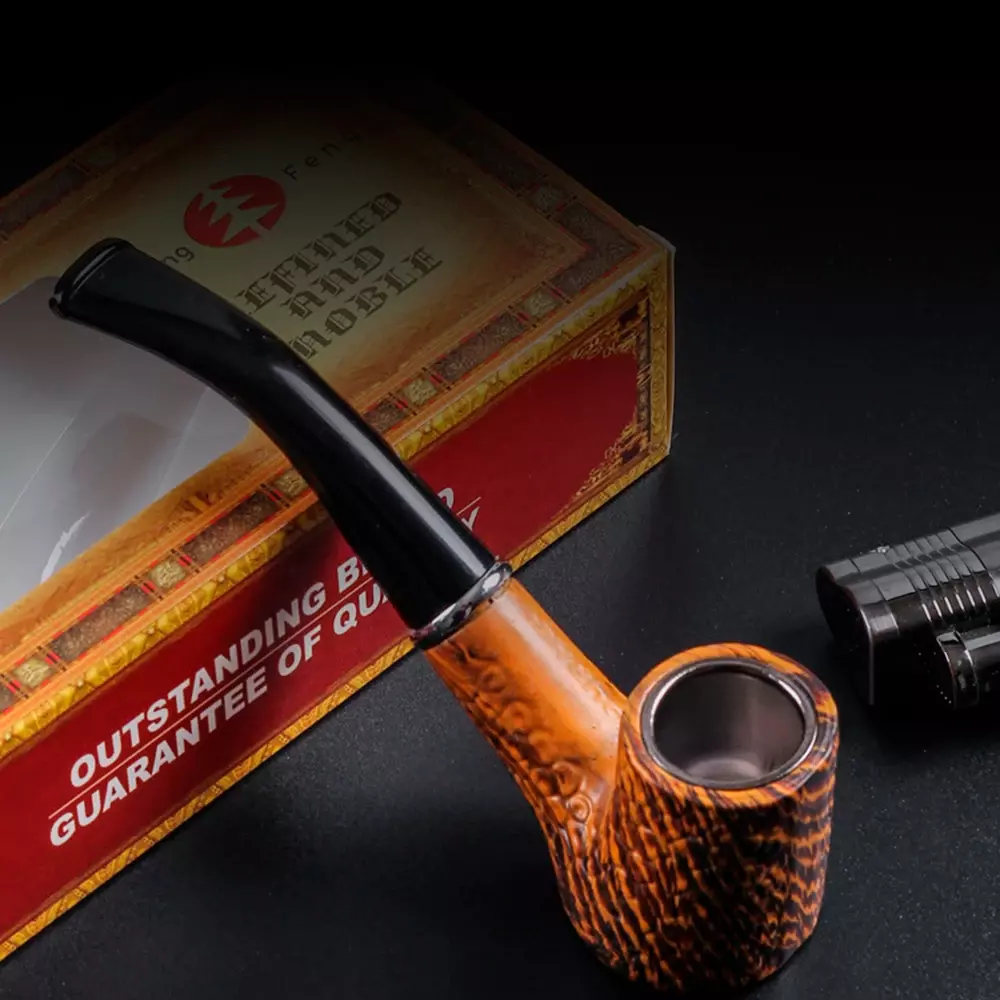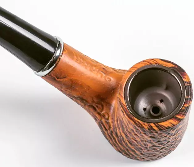 Курительная трубка в классическом стиле с оригинальной фактурой поверхности. Чаша выполнена в коричнево-рыжем оттенке с рельефным узором, устойчивым к высоким температурам. Внутри — металлическая вставка камеры для удобства и долговечности. Изогнутый глянцевый мундштук из пластика обеспечивает комфортное использование.
