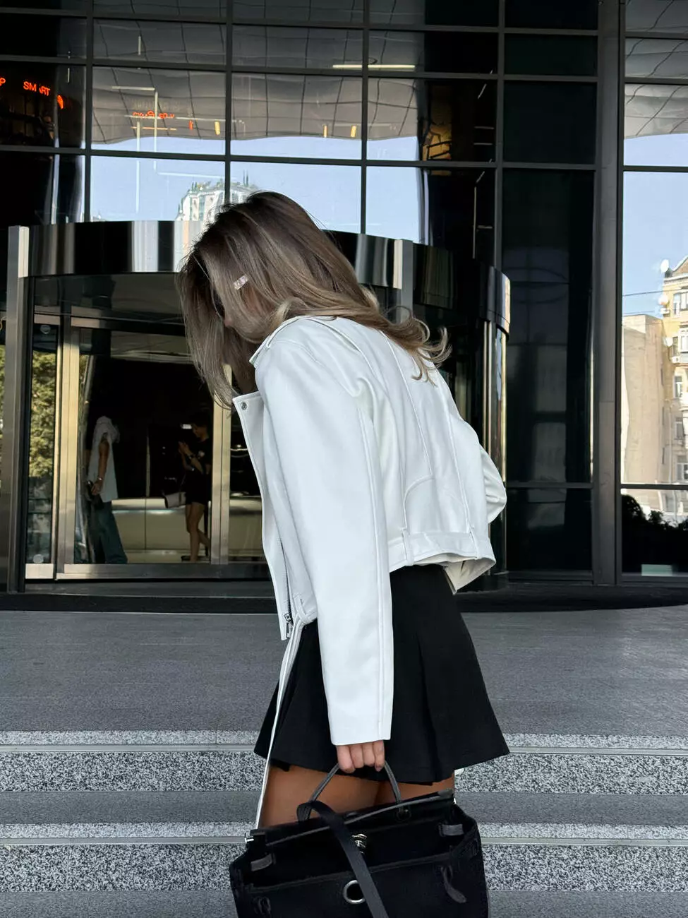 Стильна, трендова, укорочена косуха з еко-шкіри ЛЮКС якості