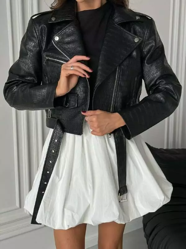 Стильна, трендова, укорочена косуха з еко-шкіри ЛЮКС якості Діючі кармани, змійки метал кольору нікель.