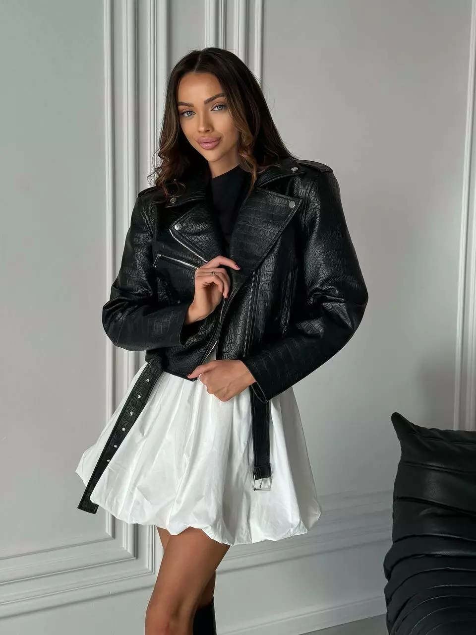 Куртка -косуха з ОБʼЄМНИМИ ПЛЕЧИМА колір рептилія чорний