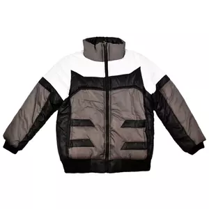 Теплая демисезонная куртка с флисовой подкладкой. Поверхностный слой изделия изготовлен из не продуваемого синтетического материала – полиэстера и оформлен в стильном цветовом сочетании коричневого, серого и белого цветов. Между флисовой подкладкой изделия и не продуваемым слоем куртки расположен войлочный наполнитель, который улучшает теплоизоляционные свойства изделия и исключает развитие плесневых грибков на фоне повышенной влажности одежды, которая находится ближе к телу.