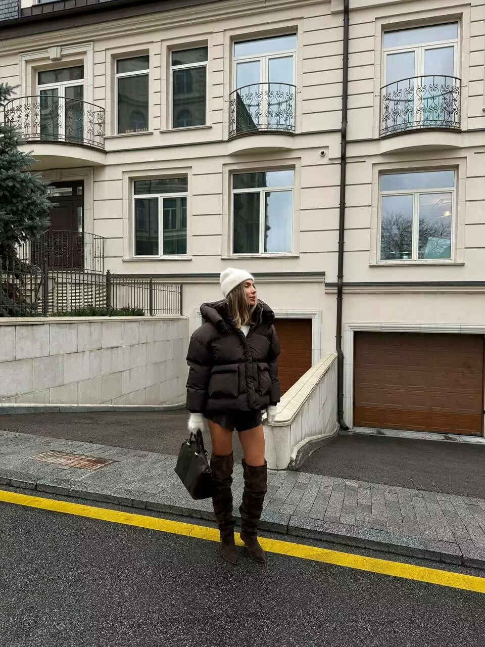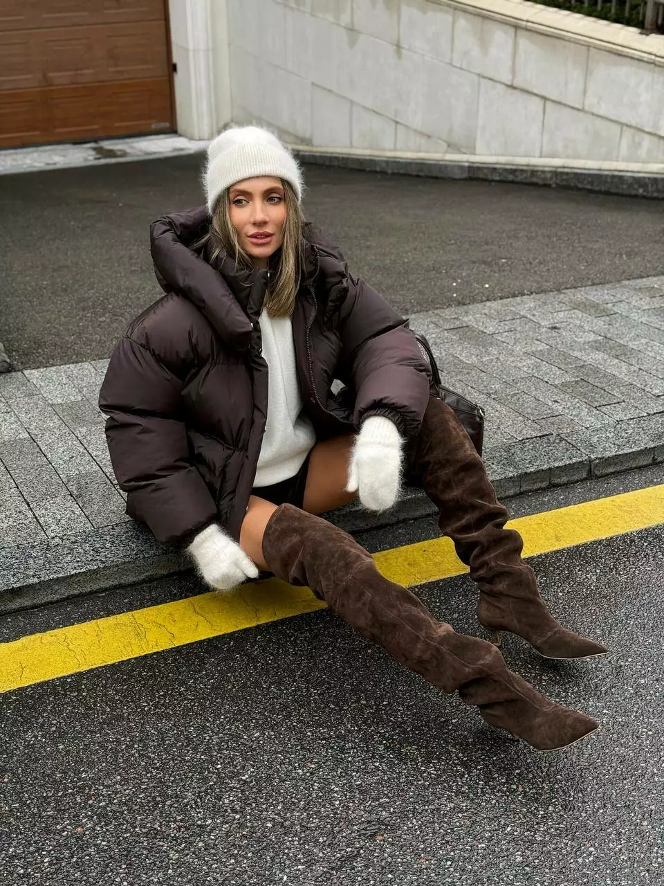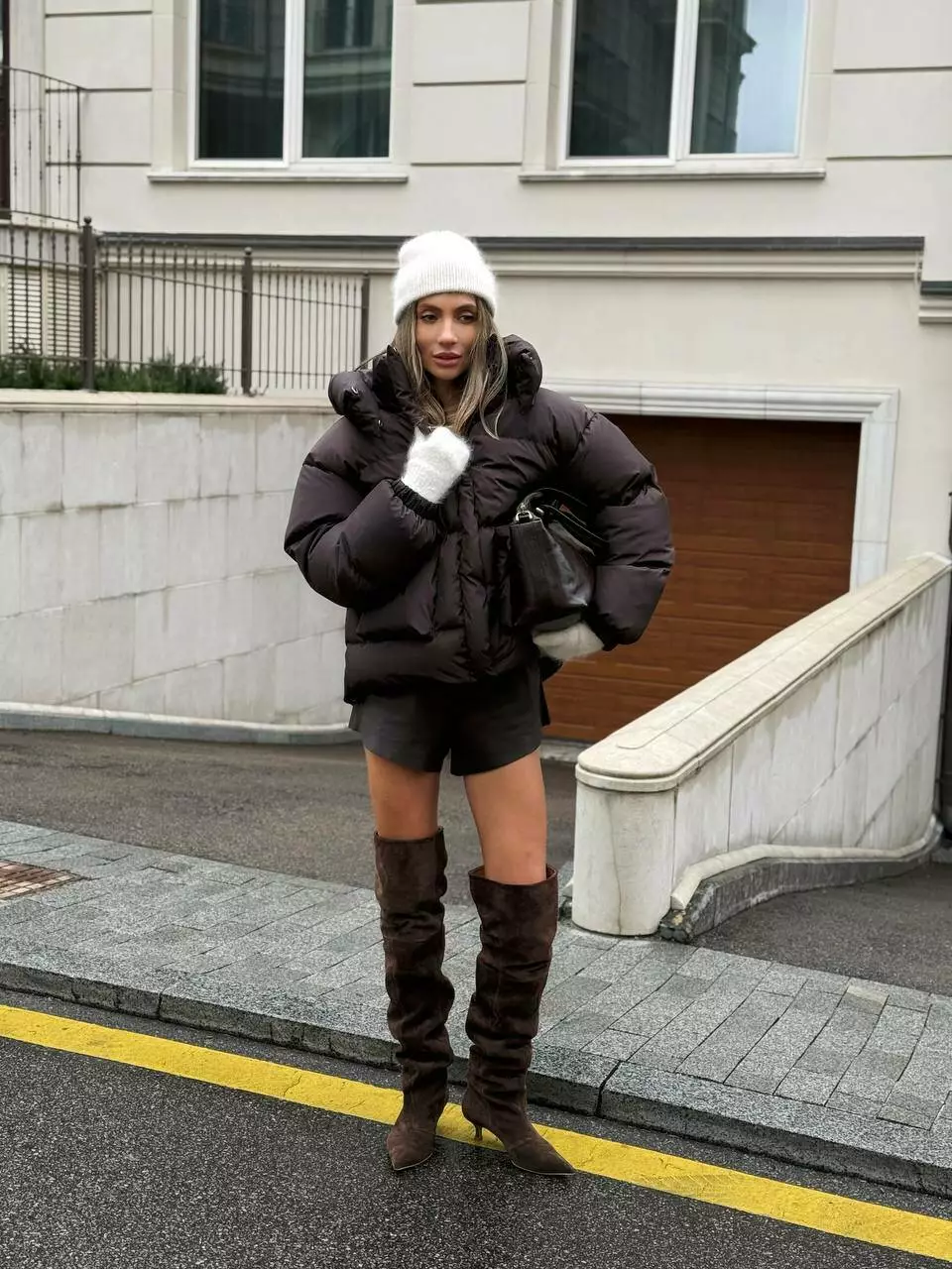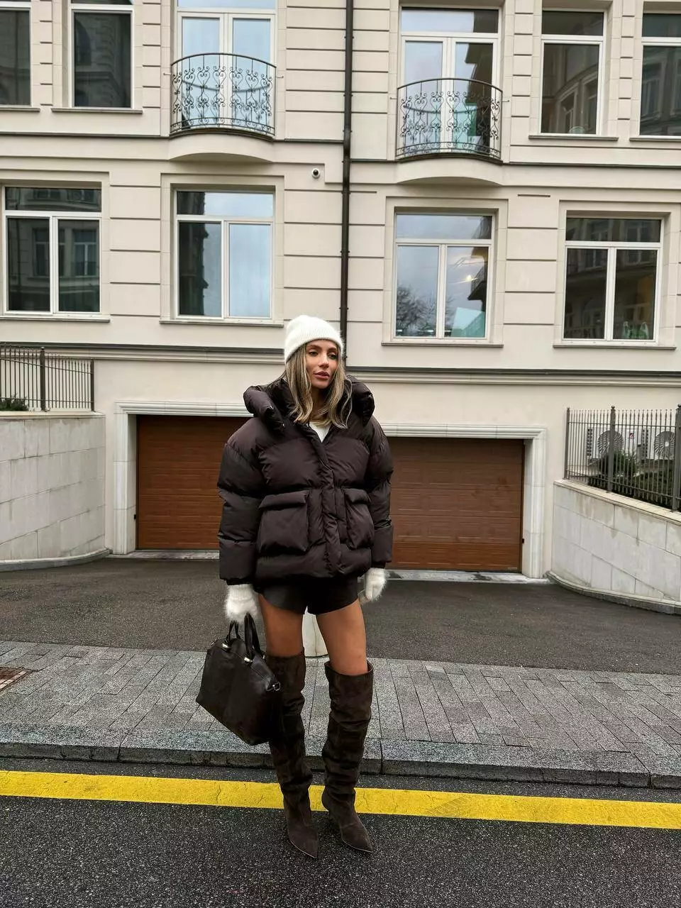 Зимовий укорочений пуховик, виконаний з плащівки на мембрані, що є непродувною і водонепроникаючою. Капюшон знімається