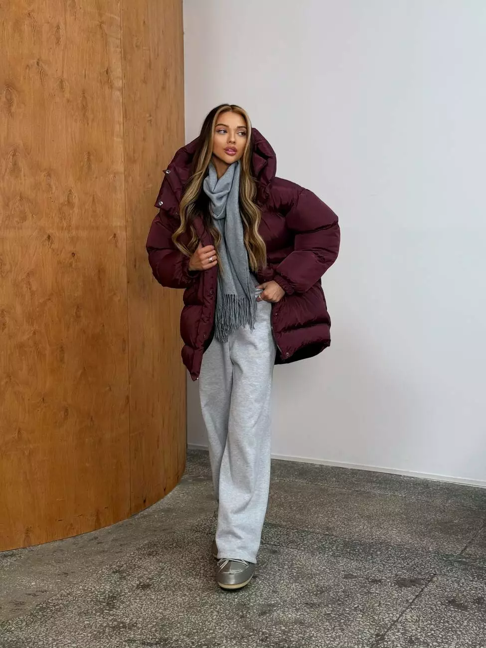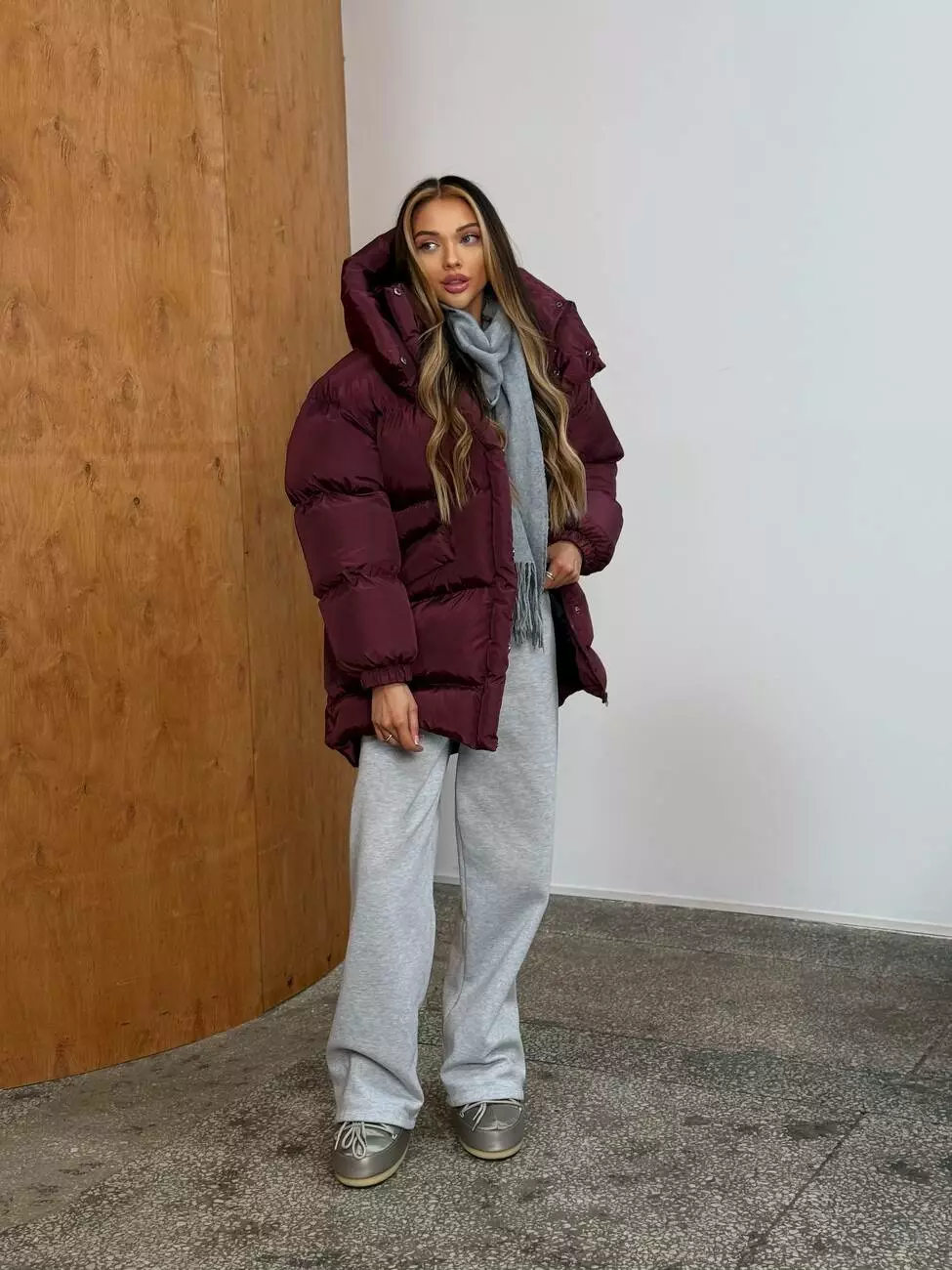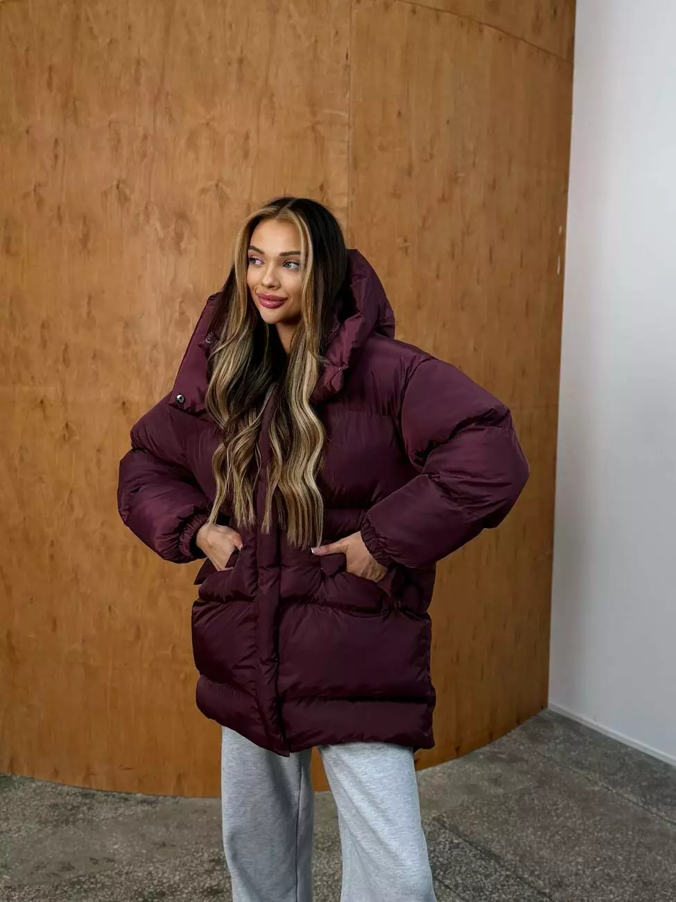 Зимовий подовжений пуховик, виконаний з плащівки на мембрані, що є непродувною і водонепроникаючою. Капюшон знімається