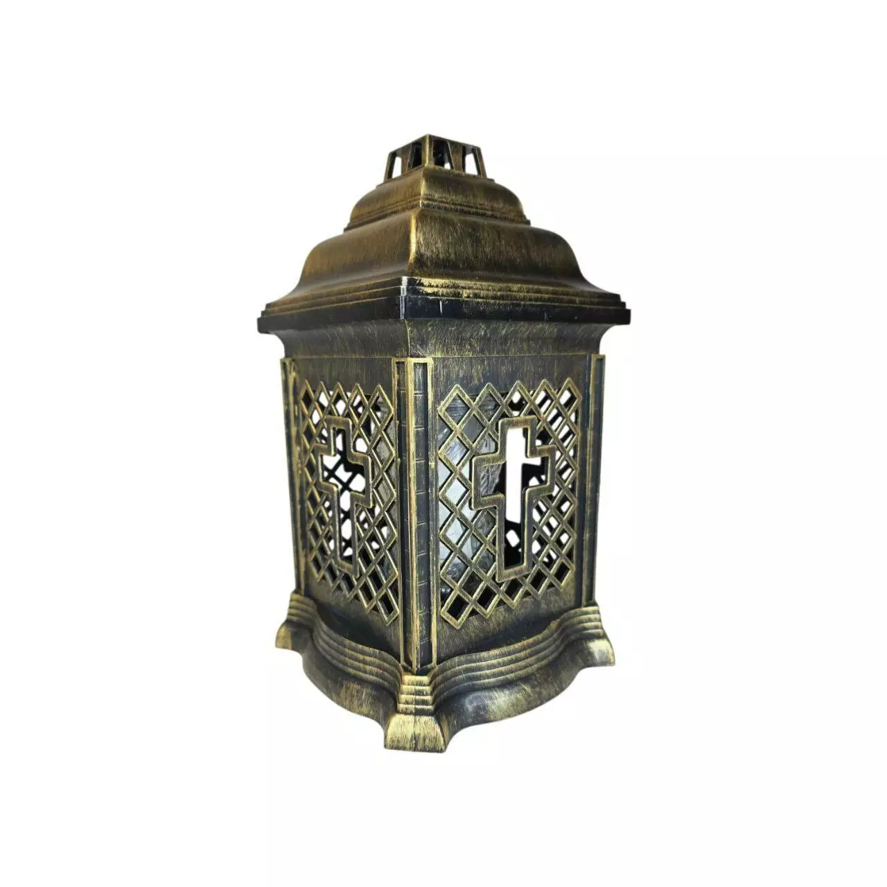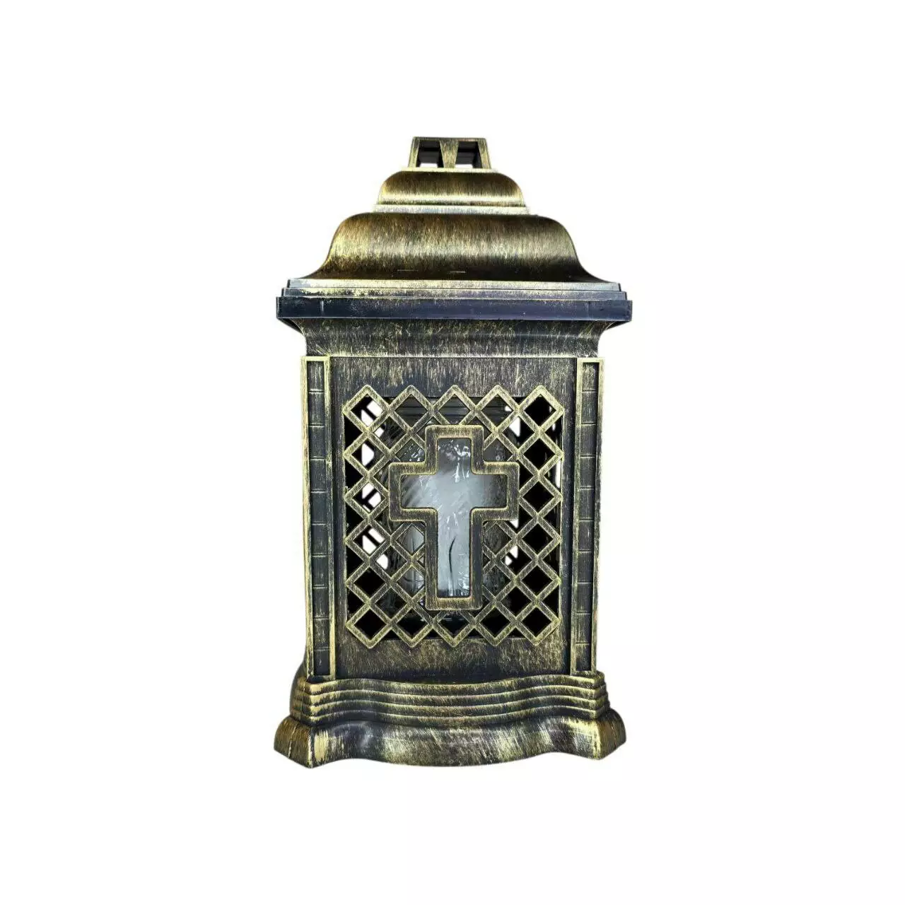 Лампадка виготовлена зі скла всередині пластиковой каплички. Висота 250 мм, час горіння парафінової запаски - 36 годин.