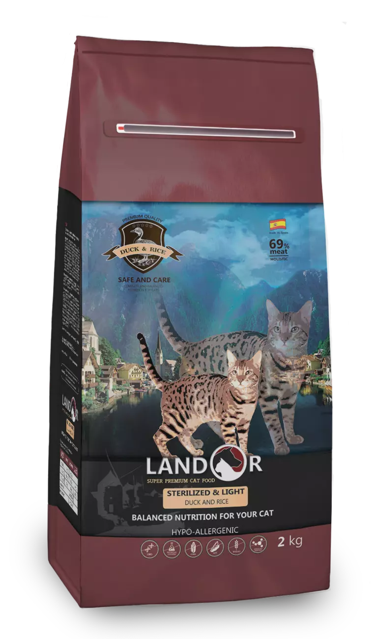 LANDOR Повнораціонний сухий корм для кішок з надмірною вагою і стерилізованих качка з рисом 10 кг