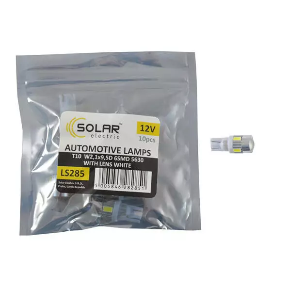 LED автолампа SOLAR 12V T10 W2.1x9.5d 6SMD 5630 with lens white 10шт (LS285_P)