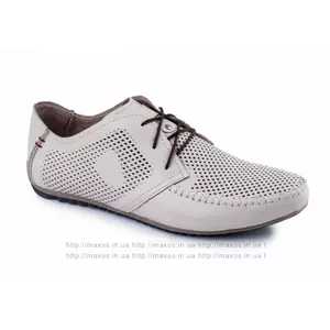 Летние мокасины Maxus. Модель ШН кожа бежевые с перфорацией.
