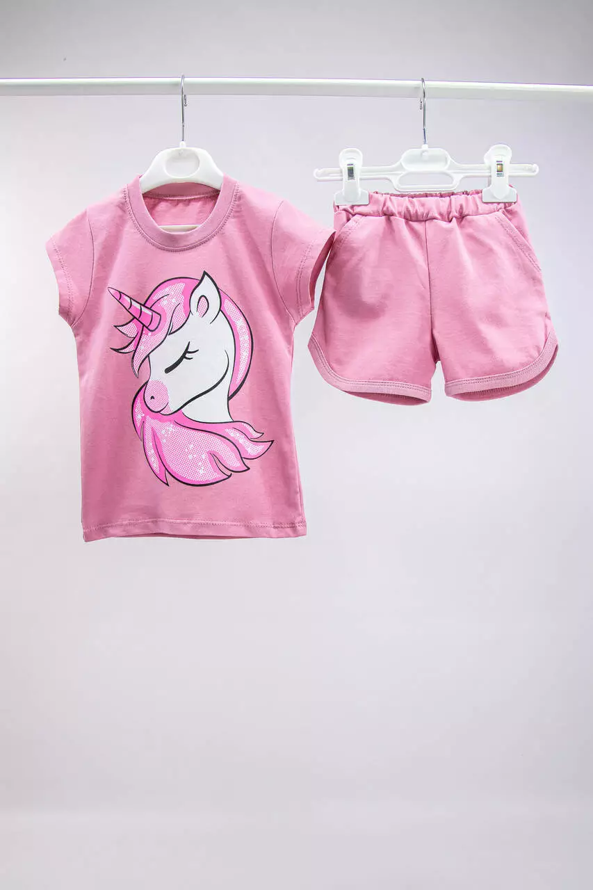Комплект летний однотонный для девочки: футболка с короткими