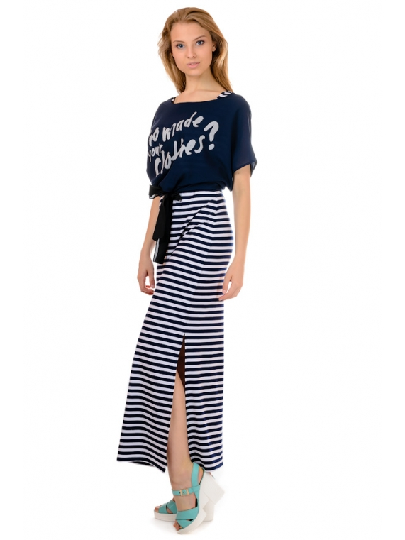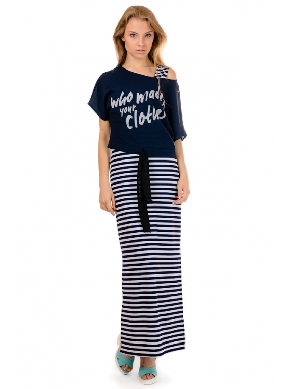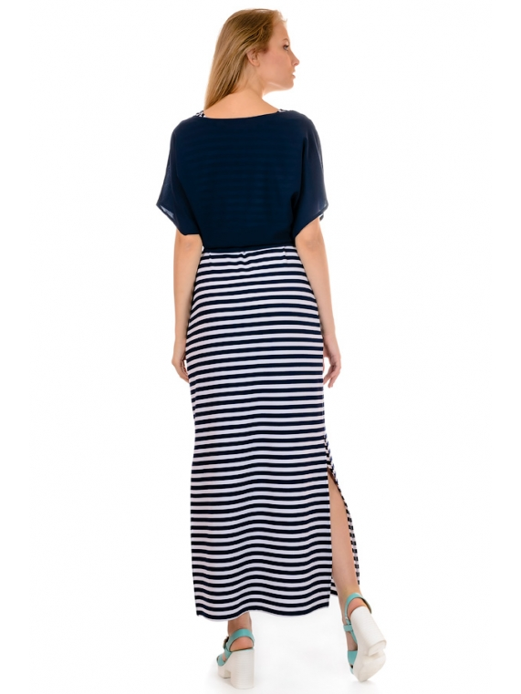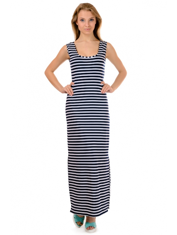 Молодежное женское платье в полоску. Изделие прямого кроя, сбоку