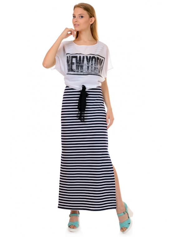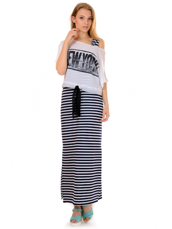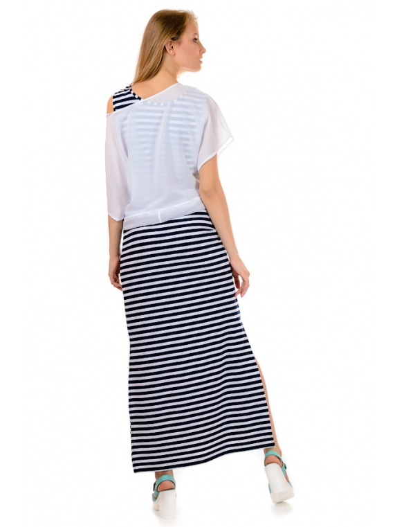 Молодежное женское платье в полоску. Изделие прямого кроя, сбоку