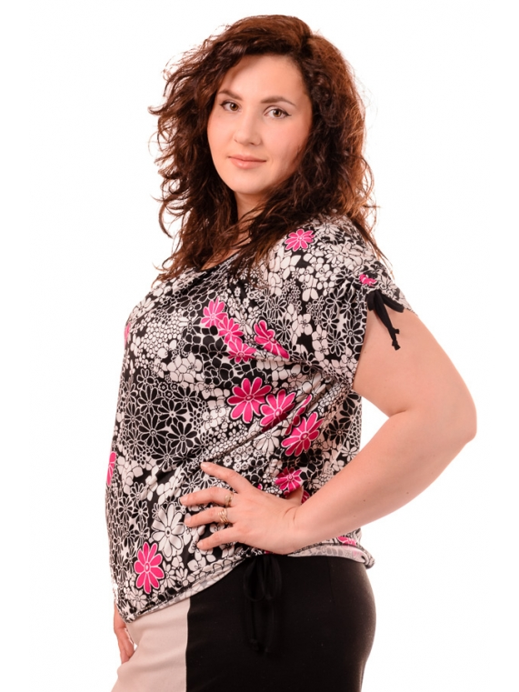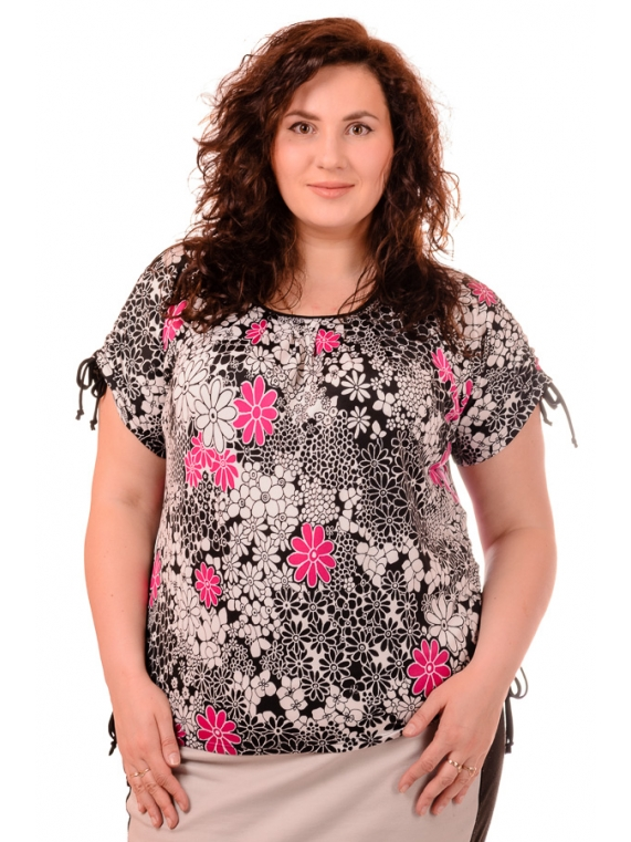 Летняя футболка свободного силуэта. Размеры 52-58. Ткань - масло/микромасло. Рукава и бока изделия собираются на затяжку, что позволяют регулировать длину.