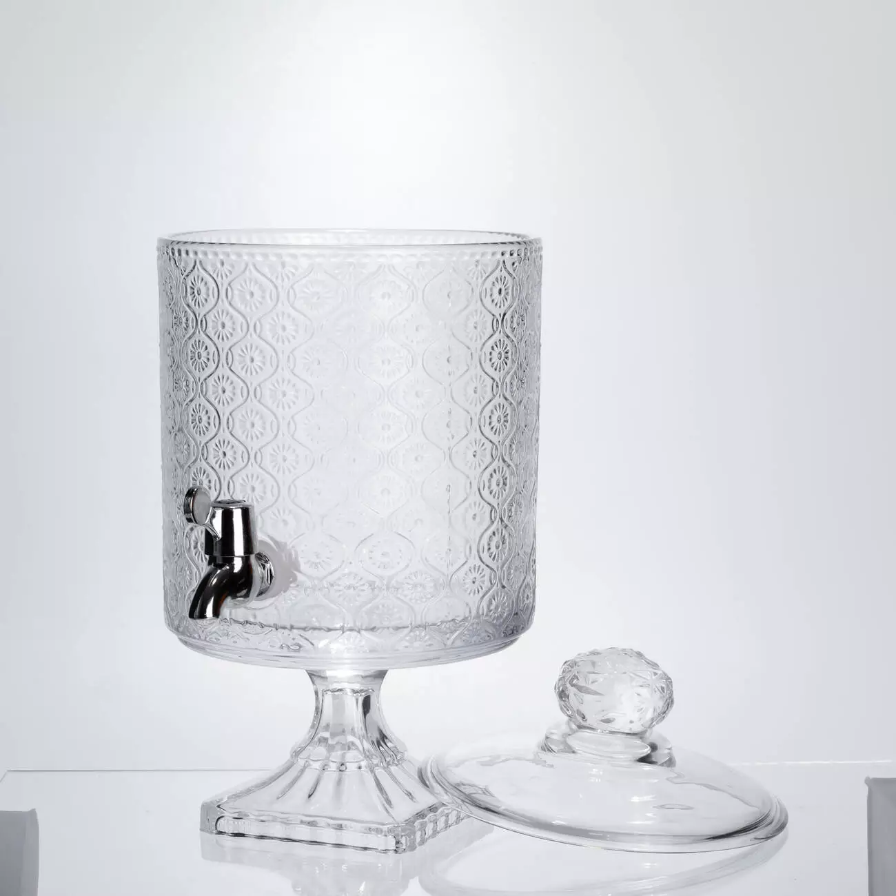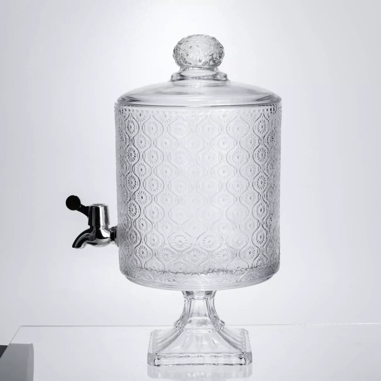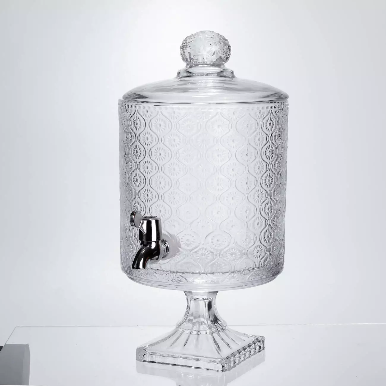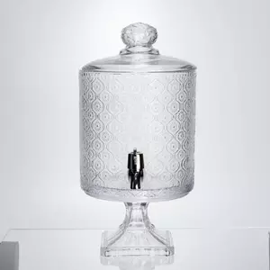 Лимонадниця на ніжці з краном стане зручним рішенням для подачі напоїв у побуті чи під час святкових заходів. Вона виготовлена з товстого скла, що забезпечує міцність та стійкість до навантажень. Завдяки прозорій поверхні завжди видно рівень напою та його колір.