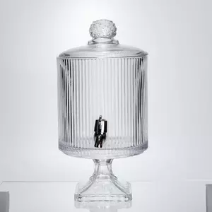Лимонадниця на ніжці з краном стане зручним рішенням для подачі напоїв у побуті чи під час святкових заходів. Вона виготовлена з товстого скла, що забезпечує міцність та стійкість до навантажень. Завдяки прозорій поверхні завжди видно рівень напою та його колір.