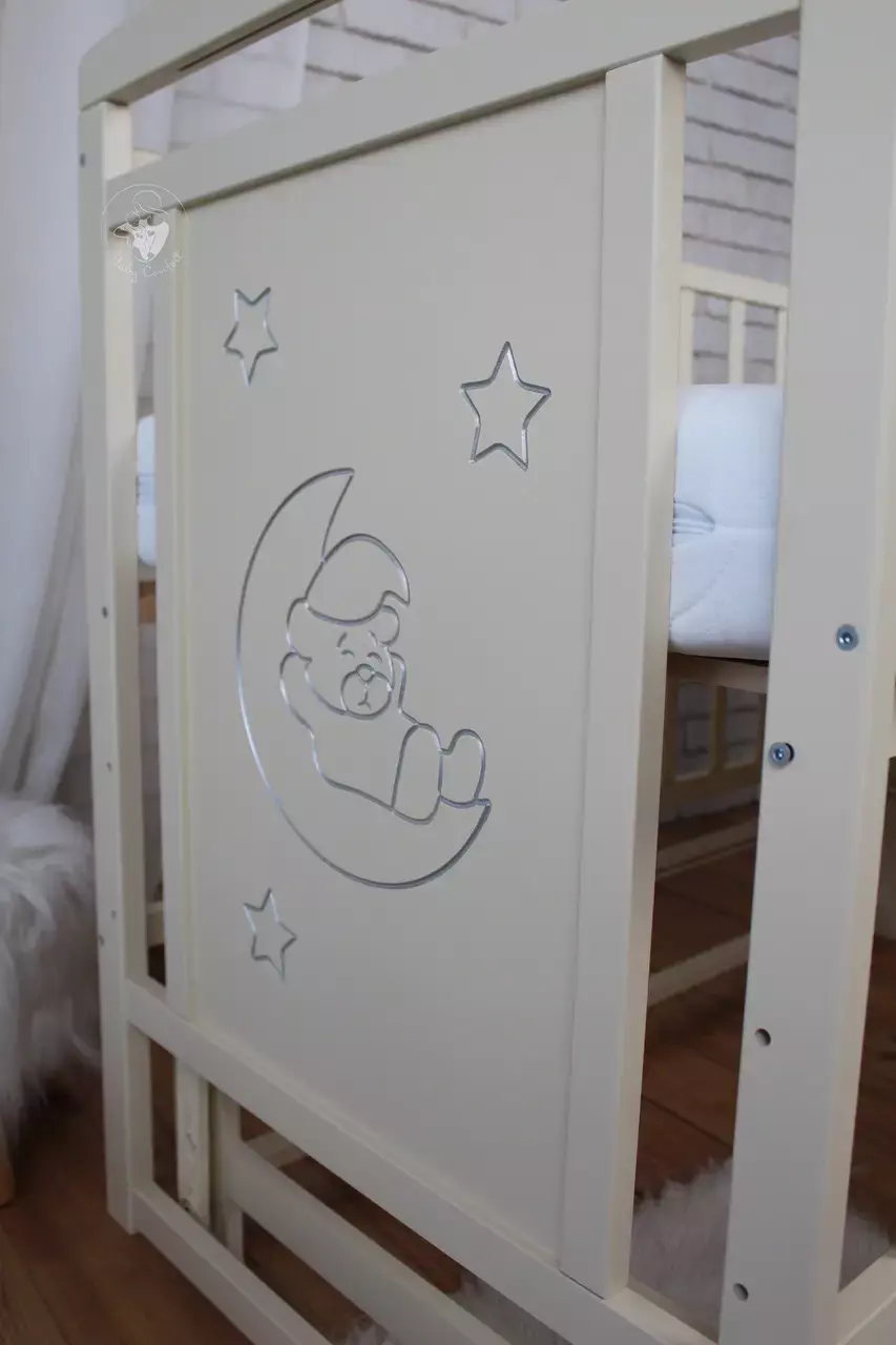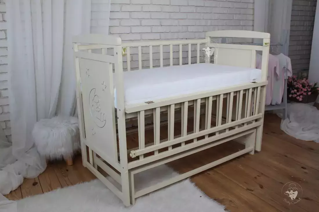Дитяче ліжечко Baby Comfort TEDDY - уособлення стилю та функціональності. Ліжечко виконане із масиву натурального дерева бук згідно всім вимогам виготовлення меблів для дітей. Вона ідеально відшліфована, пофарбована фарбою на водній основі європейського виробництва - безпечною для малюка та батьків. Бокові стінки прикрашені різьбленням та срібною патиною, що надає ліжечку ексклюзивності. Окрім привабливого зовнішнього вигляду ліжечко володіє широким функціоналом, який значно спрощує батькам догляд за новонародженою дитиною. Це і відкидкий бортик, дякувати якому малюка буде легко дістати з ліжечка, а також - використовувати його як приставне. Безшумний маятник допоможе заколихати дитину, а наявність фіксатора - приємний бонус для діток старше, коли необхідність в заколихуванні відпаде. Днище ліжечка регулюється по висоті, тому в залежності від віку його можна ставити у різне положення.