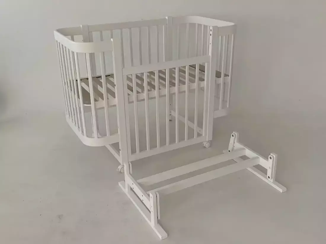 Ліжко дитяче Мія - сучасна та стильна модель, виконана з натурального дерева бук, пофарбована сертифікованими фарбами на водній основі - абсолютно нешкідливими для Вас і Вашого малюка. Бортики ліжечка округлені. У комплекті до ліжечка відразу ж йдуть колеса. Це допоможе легко перемістити ліжечко в потрібне місце кімнати. Також, в комплектацію входить маятник для заколисування малюка - з його допомогою малюк засне швидше і солодше. Ліжечко має опускну передню стінку для зручності батьків. Є можливість поставити днище ліжечка під кутом. Все продумано до дрібниць - для комфорту і безпеки Вашого малюка!