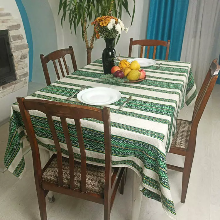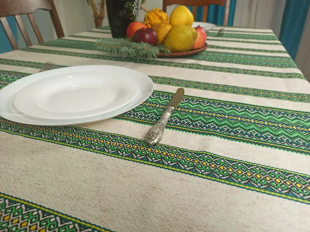 Лляна скатертина з орнаментом Зелений, 110x145 см, Без серветок