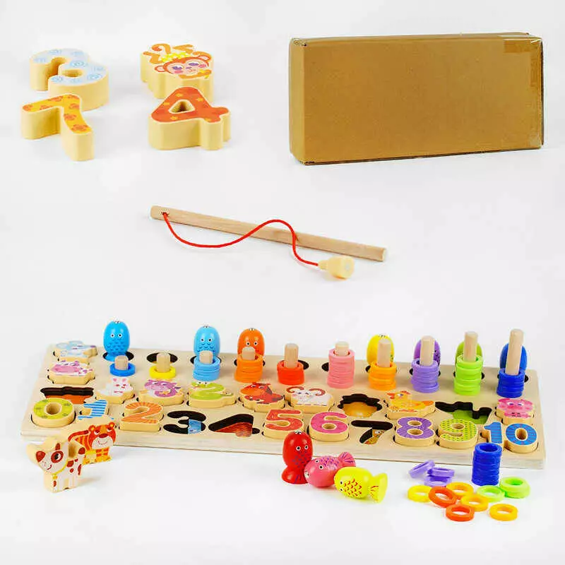 Логічна дерев’яна дошка C 54738 (18) сортер, кілочки, магнітна риболовля, в коробці