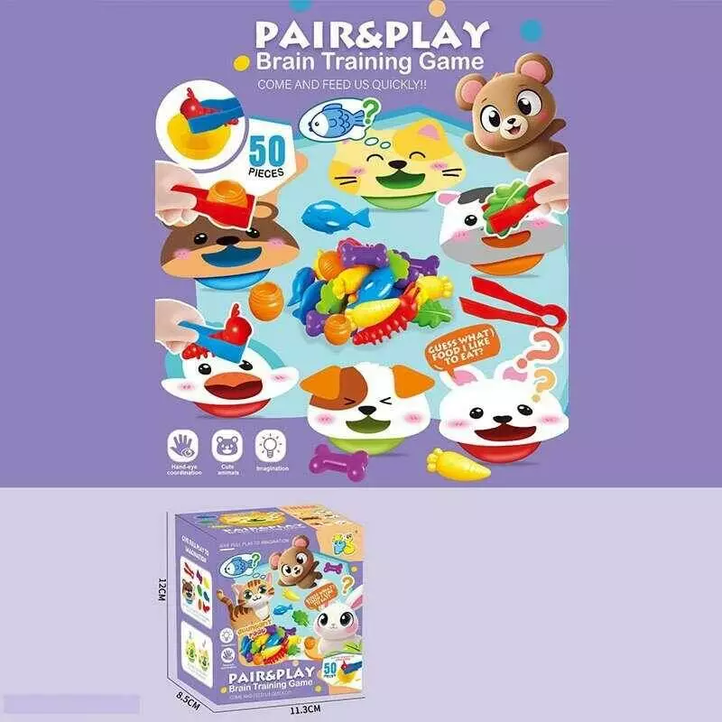 Логічна гра 2188-114 (60/2) сортер, 50 елементів, 6 тарілочок-тваринок, 2 пари щипців, в коробці