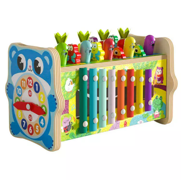 Ігровий центр C 68266 (24) дерев’яний,стукалка,магнітна риболовля, ксилофон, гра “Грядка”, рухомі шестерні, циферблат, пальчиковий лабіринт, в коробці