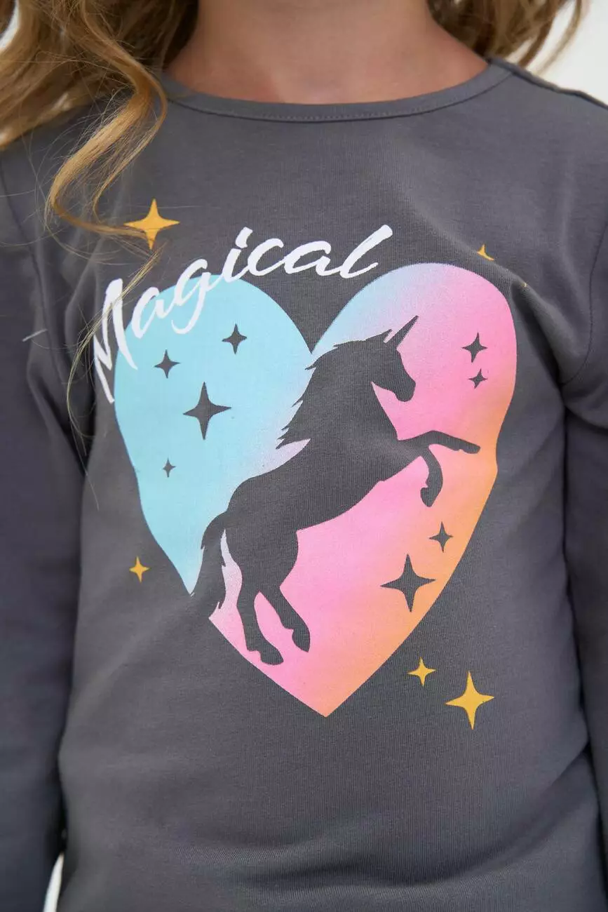 Лонгслів для дівчинки сірий з малюнком єдинорога в серці YU.22.04.001