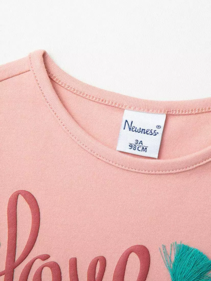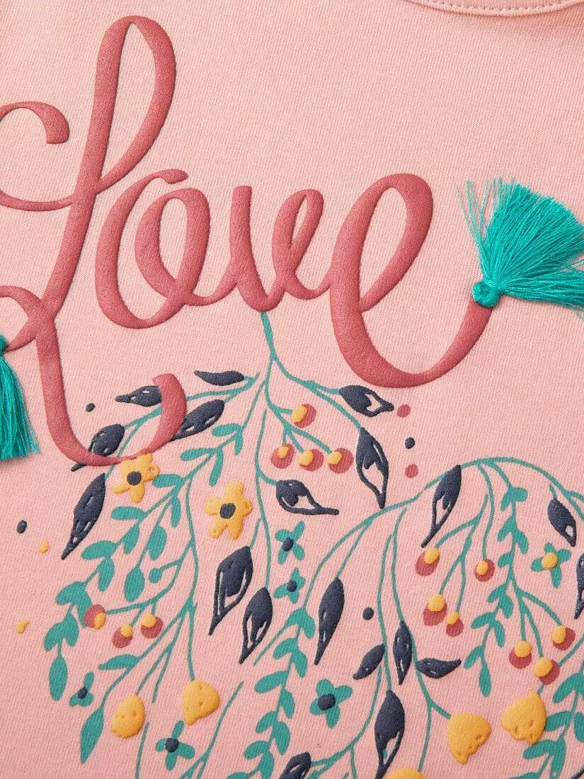 Зустрічайте нову колекцію - колаборація брендів YUMSTER і NEWNESS! Стильний лонгслів для дівчинки з квітковим принтом. Деталі моделі: лонгслів рожевого кольору. Кругла горловина. Довгий рукав. Прямий крій. На грудях великий принт Love. Розмірний ряд: на зріст від 98 см до 134 см