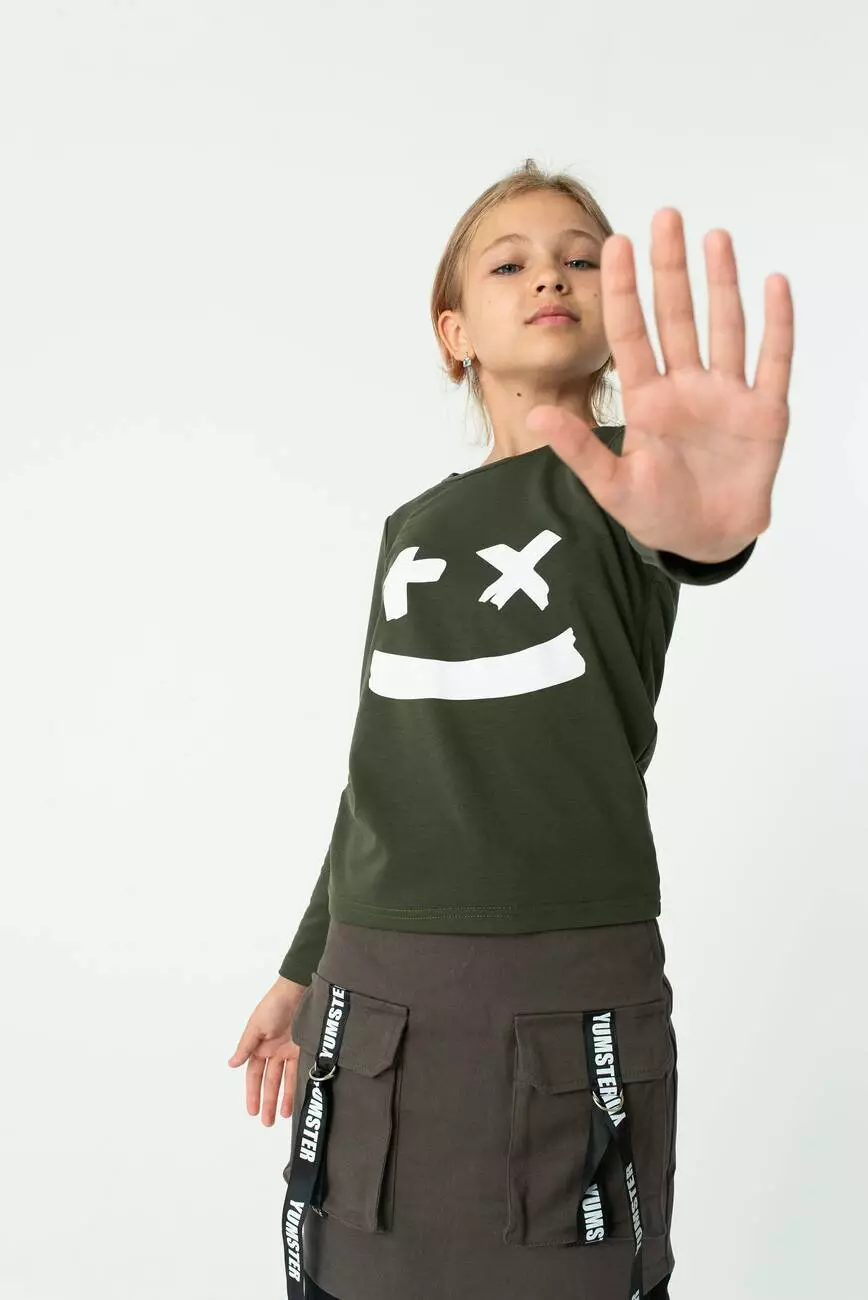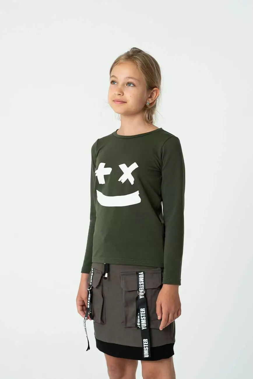Трендовий дитячий лонгслів для дівчат. З принтом на грудях.