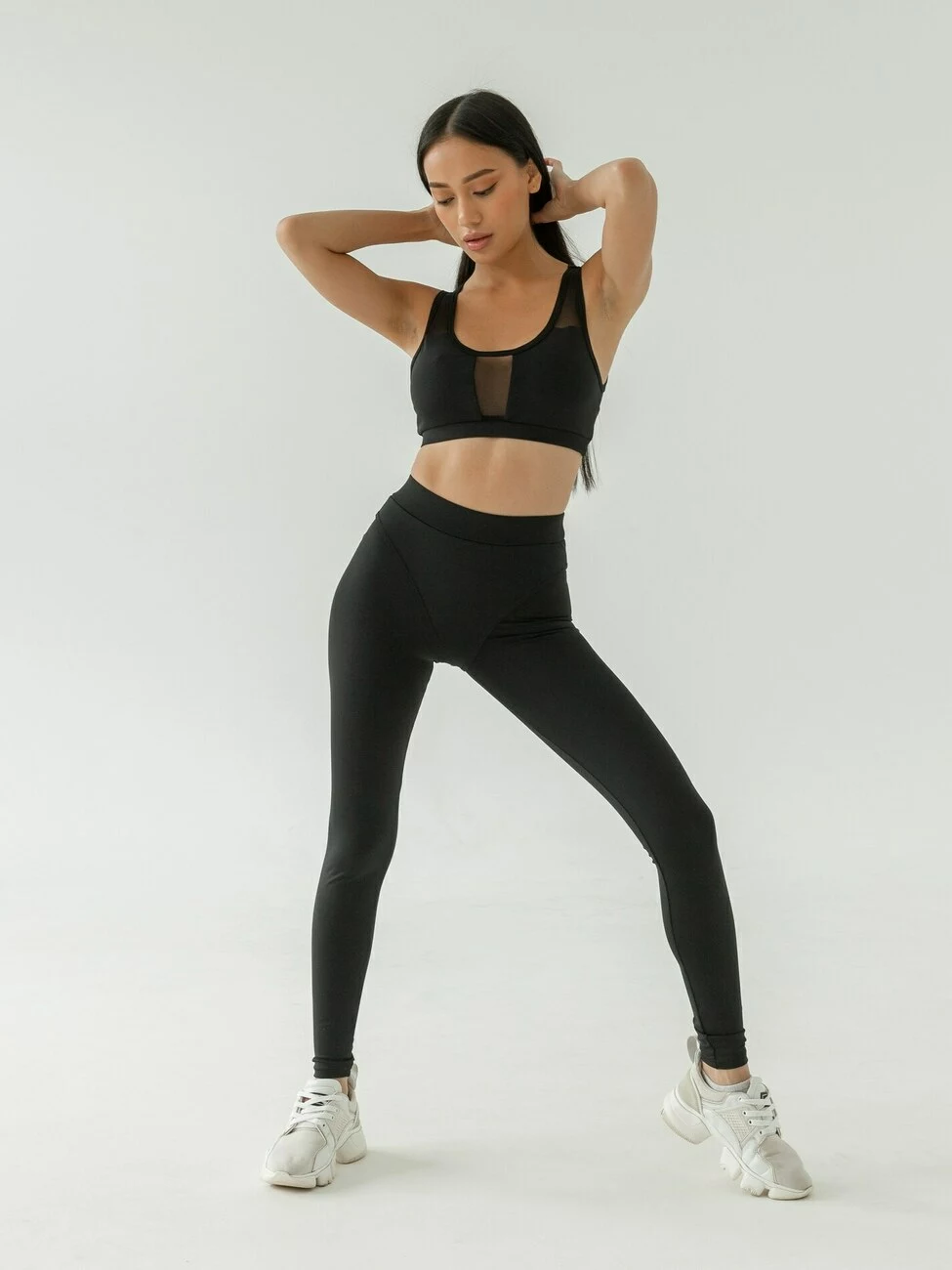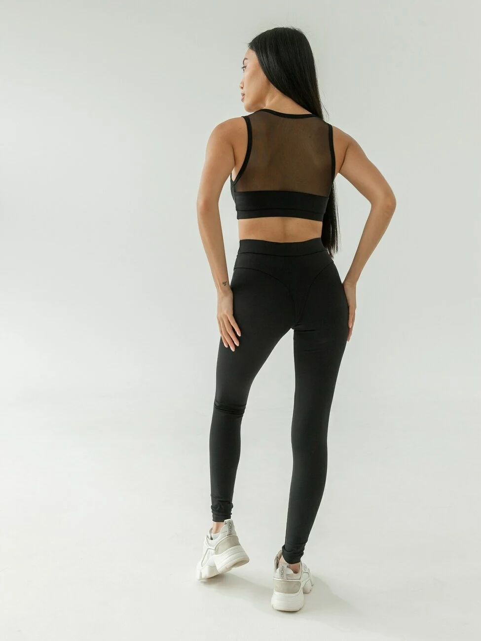 Спортивні лосини з еластичної тканини, тягнуться в 4 сторони, не сковують рухи. Завдяки щільній тканині, тканина не витягується, не вицвітає, не просвічується, на ній не залишається зачіпок.